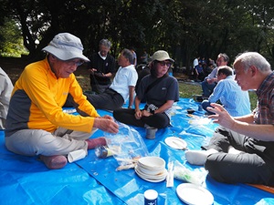 | コース | 東小金井(8:30)⇒(9:00)小金井公園 14:00 解散 | コメント | 三鷹市山岳連合会(三鷹山岳会・日本無線OB会・T1三鷹ハイキングクラブ)の合同親睦会。 総勢24名+ワンちゃん2匹。女性陣は手慣れたもので、焼きそばなど色々な料理を手際よく作る。 男性陣その間、暇つぶしにほろ酔い気分に。料理がそろい全員で大盛り上がり、楽しいひと時を過ごした。ワンちゃんも大満足のようだった。 |